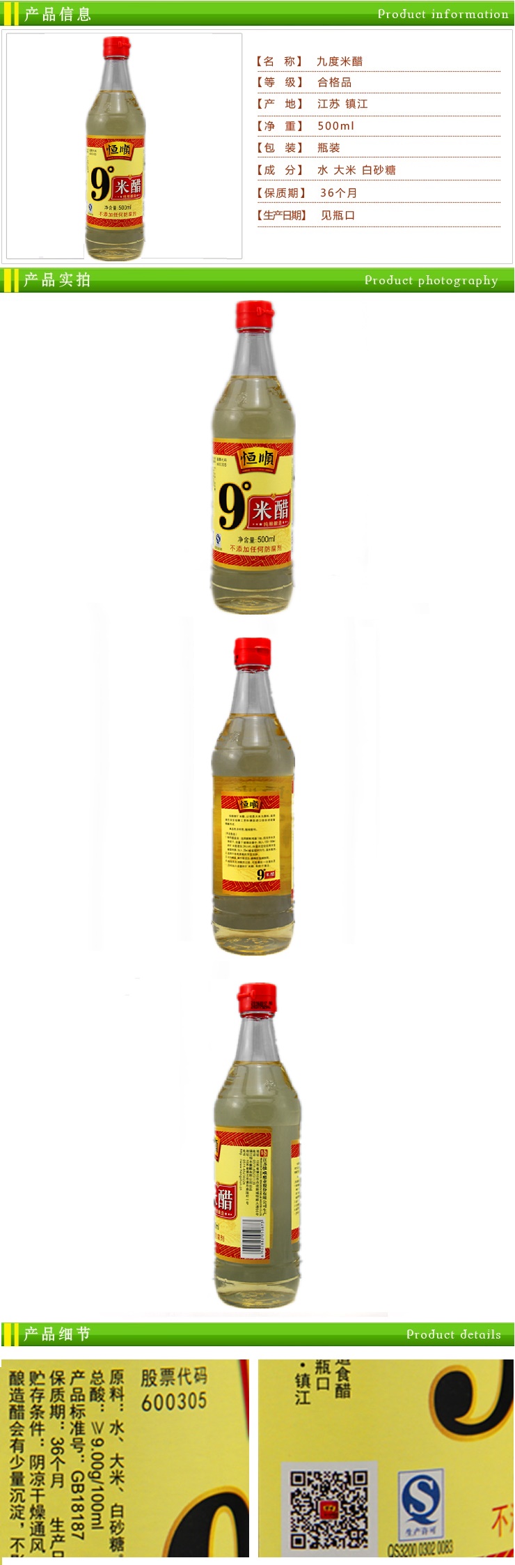 恒顺米醋9?500ml*12